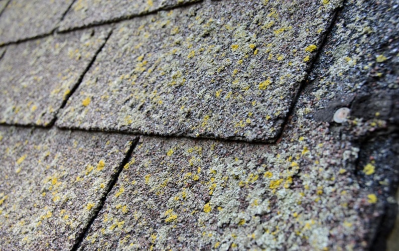 Mos og alger sætter sig på taget, hvor det holder på fugten og får taget til at se plettet og uensartet ud.