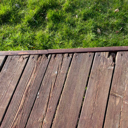 Hold øje med begyndende råd i overfladen, endestykker og bærende bjælker i mellemrummet mellem brædderne.