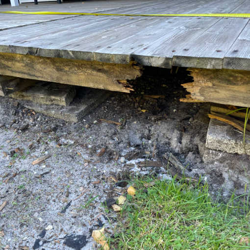 Løse brædder pga. råd i understøttelse
